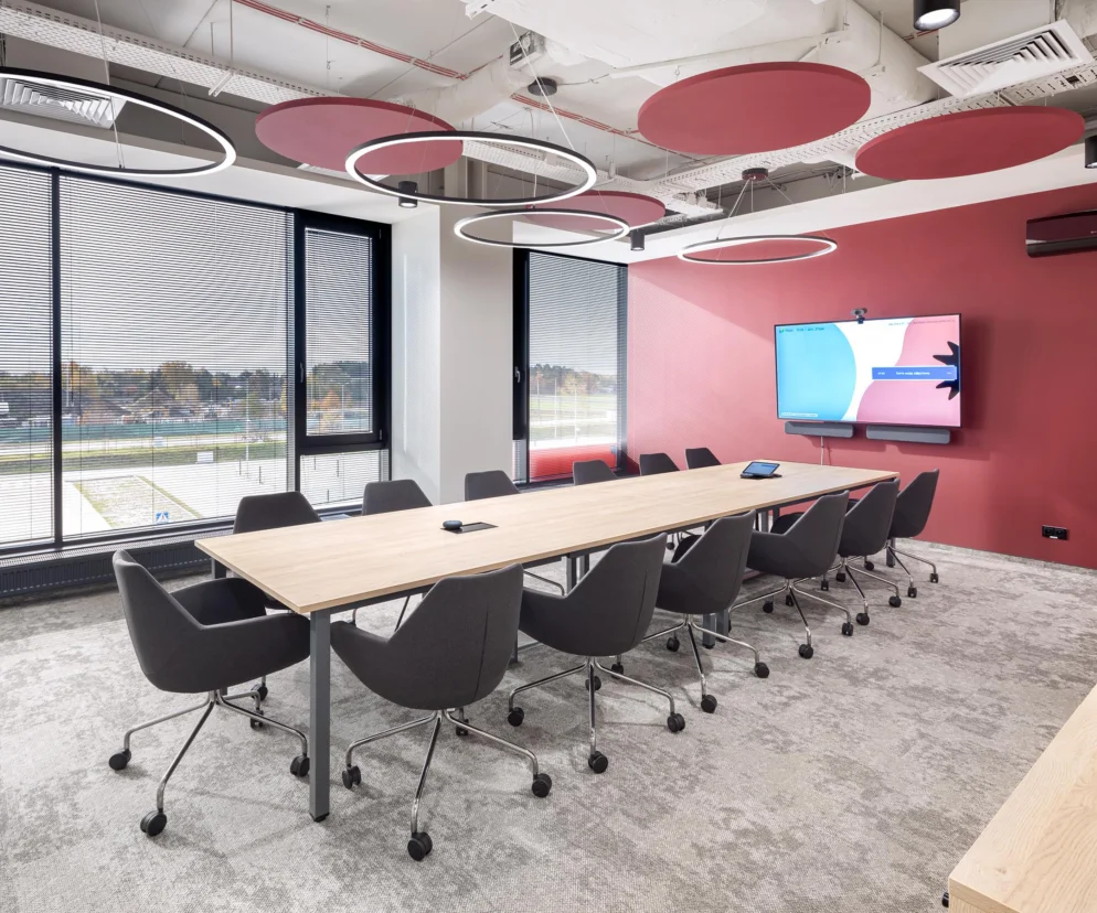 Projekt uwzględnia także rozwiązania zrównoważone. W przestrzeniach biurowych zastosowano wykładzinę dywanową o niskim śladzie węglowym, z ponad 53-procentowym udziałem materiałów z recyklingu i pochodzenia naturalnego, a także przędzę i podłoże w pełni nadające się do recyklingu. Całość uzupełnia energooszczędne oświetlenie LED oraz filcowe elementy PET.
