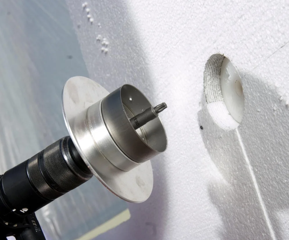 Montaż łączników należy wykonać zgodnie z zaleceniami producenta systemów ociepleń – od przygotowania podłoża, przez wiercenie, aż po zagłębienie łącznika i zaślepienie otworu.